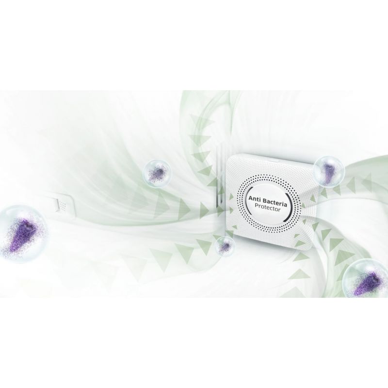 An Antibacterial Protector keeps the fridge clean and hygienic. The air is passed through an activated carbon filter, so it is constantly sterilized and deodorized, while an antibacterial mesh eliminates bacteria.