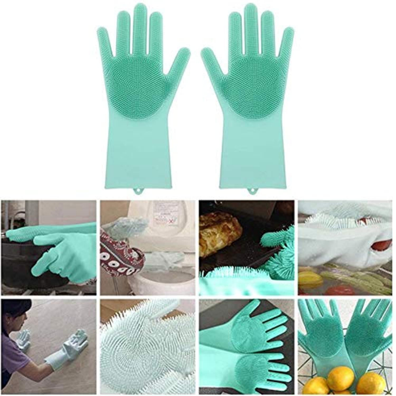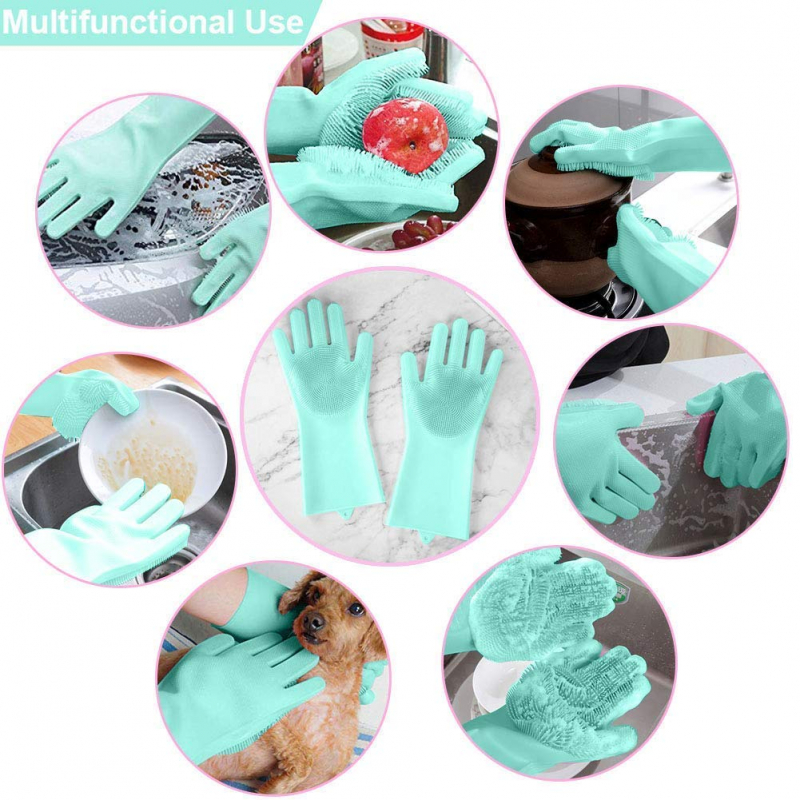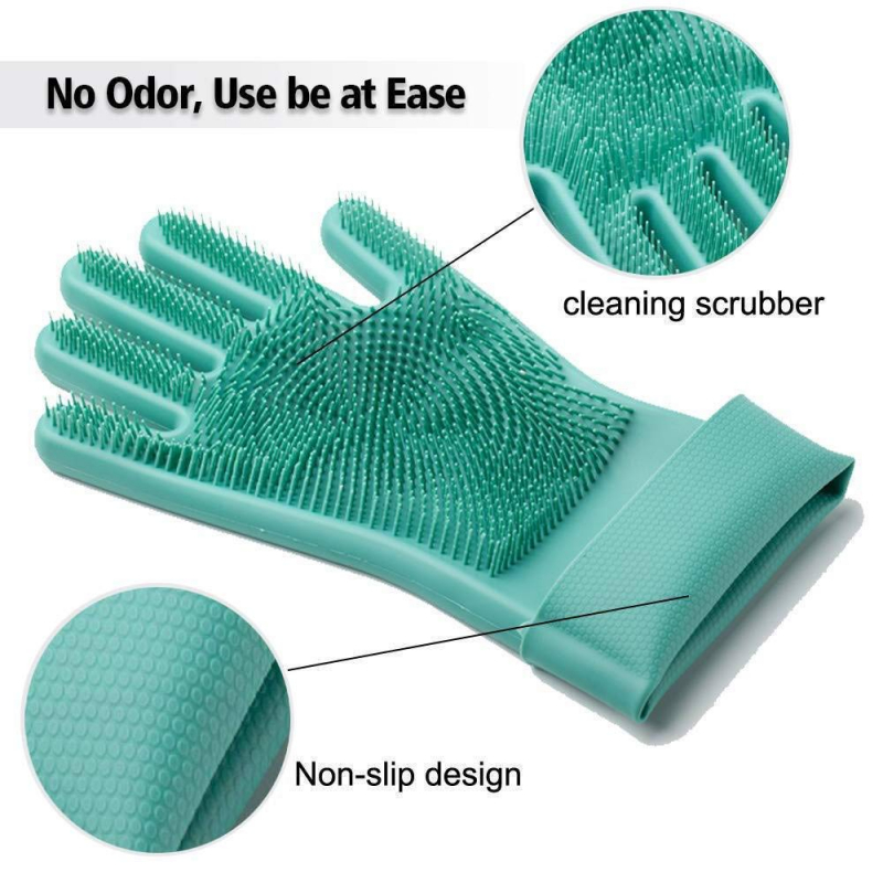 Silicone gloves combine the convenience of silicone dish gloves with the cleaning power of silicone scrubbing bristles to make the ultimate kitchen cleaner tool.