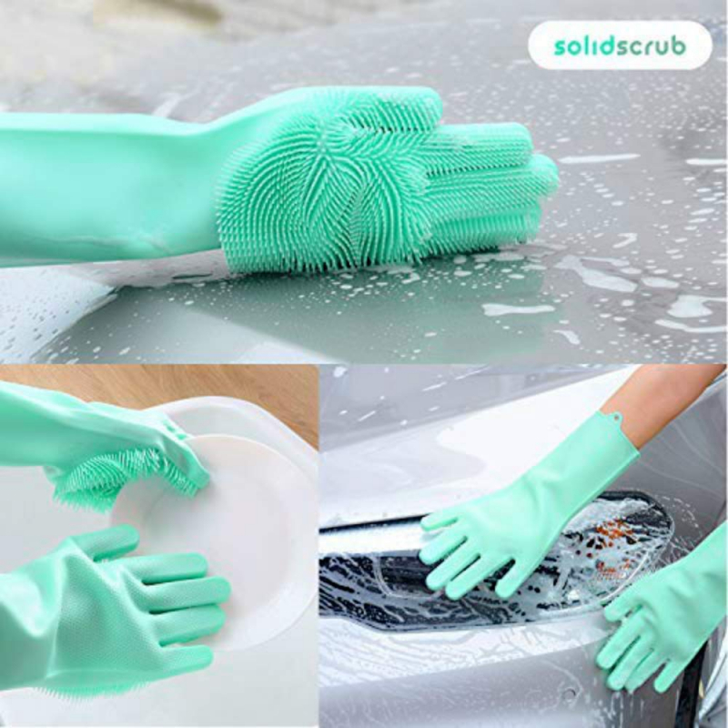 • Silicone dish gloves with built in silicone bristles