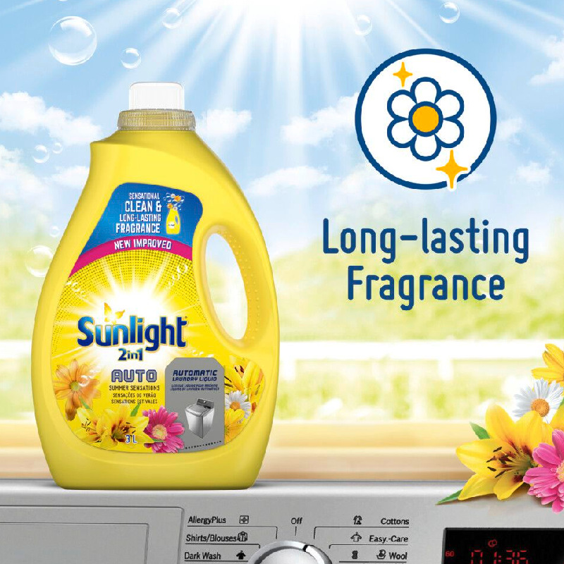 Made with the best that Sunlight offers, it leaves laundry with a sensational clean and long-lasting fragrance. Trust Sunlight’s proven cleaning power to get your laundry clean, stain-free, and wonderfully fresh-smelling.