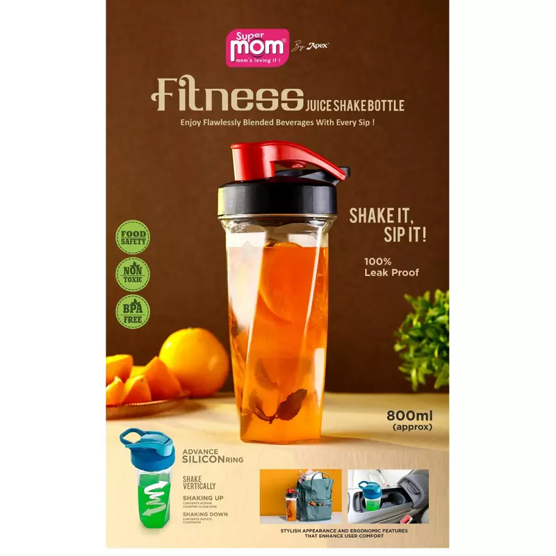 Supermom Fitness Juice Shake Bottle 800ml Plastic Material Leak Proof Lid Bpa Free 573508