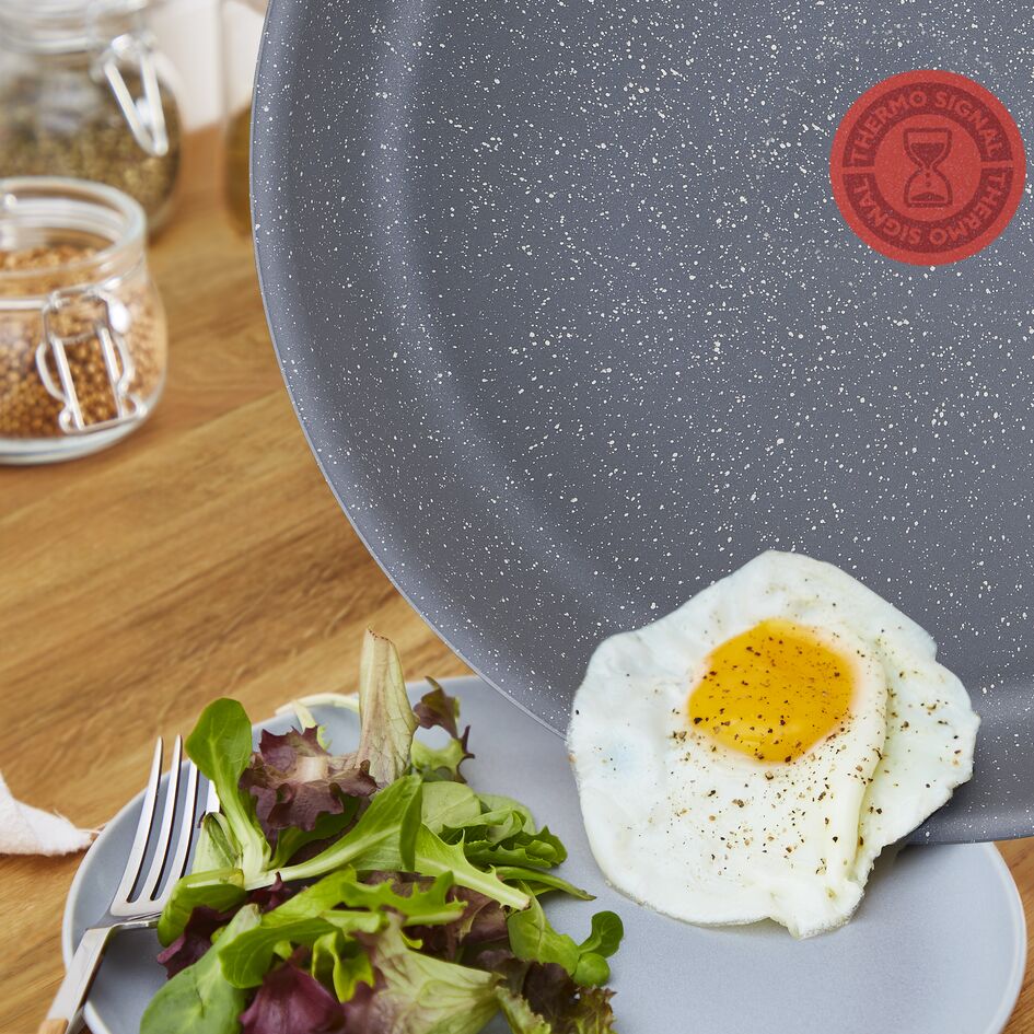 Tefal Dark Stone has been developed to allow delicious and healthy cooking without fat thanks to its highly non-stick surface reinforced with minerals. The exclusive Thermo-Signal system lets you know the ideal temperature to start cooking for perfect searing and its deep shape makes generous cooking easy (on pans only). Compatible with all hobs except induction.