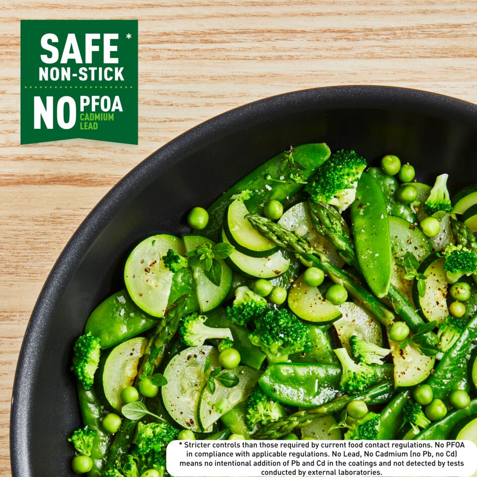 • SAFE NON-STICK COATING : Safe non-stick, no PFOA, no Lead, no Cadmium. Stricter controls than those required by current food contact regulations. No PFOA in compliance with applicable regulations. No Lead, No Cadmium (no Pb, no Cd) means no intentional addition of Pb and Cd in the coatings and not detected by tests conducted by external laboratories.