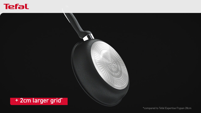 Thanks to its extra large grid combined with a thick base, Thermo-Fusion™+ guarantees fast heating and uniform heat distribution throughout the pan, for evenly cooked food prepared to perfection.