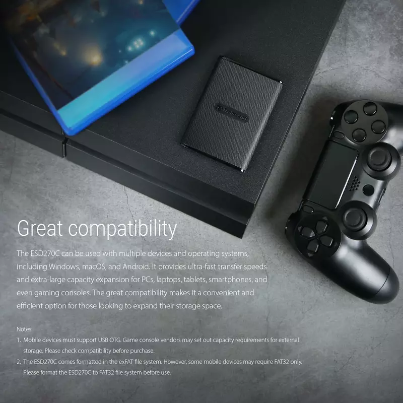 1. Mobile devices must support USB OTG. Game console vendors may set out capacity requirements for external storage. Please check compatibility before purchase.