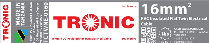 Buy online high quality and cheap 16 mm Flat Twin Cable and Discover the ease of online shopping in Tanzania with KariakooShop where you can find premium Electrical products at incredibly low prices. Experience a wide selection of Tronic products. Plus, enjoy the convenience of free delivery on numerous products in Dar es Salaam. Don’t miss out on the opportunity to shop smart and save big with KariakooShop Karibu.