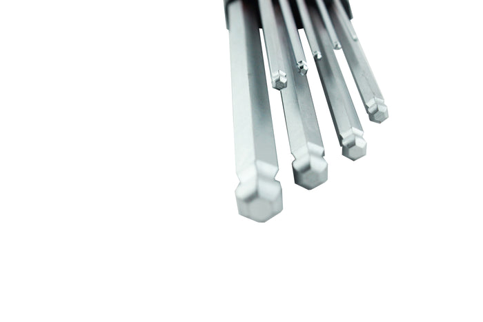 It is an L-shaped metal bar with a hexagonal head at each end, used to turn bolts and screws having hexagonal sockets. Tronic double-ring hex key.