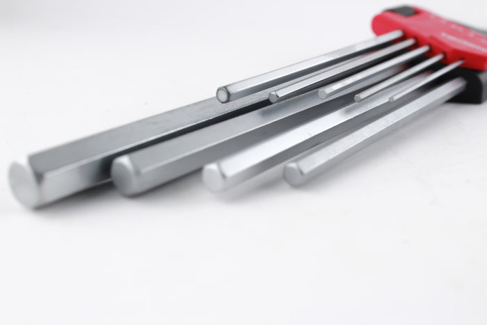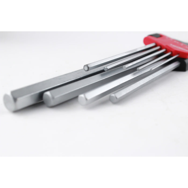 It is an L-shaped metal bar with a hexagonal head at each end, used to turn bolts and screws having hexagonal sockets. Tronic double-ring hex key.
