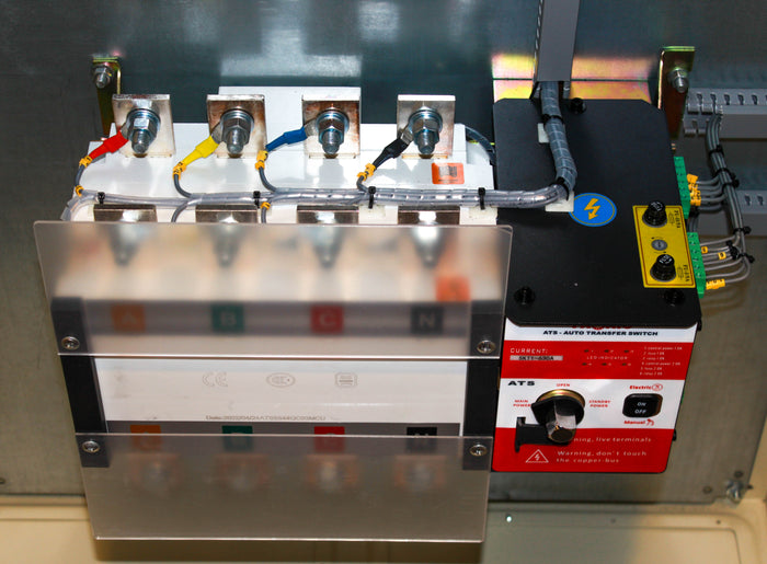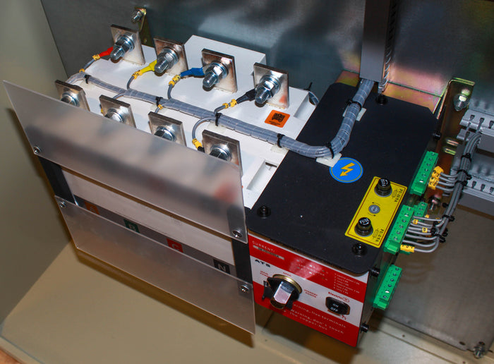 630A 4 pole automatic transfer switch unit which, in the event of a power outage, will automatically start a generator and transfer the load over to the Generator supply. When the Main supply returns to normal, the ATS will transfer the load back to the Main supply and shut down the generator.