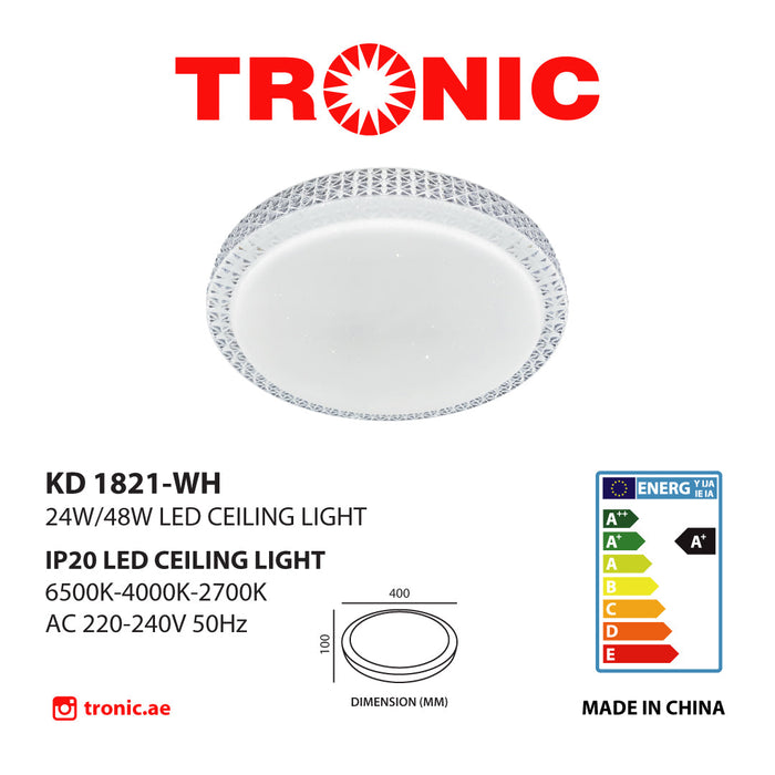 An LED ceiling light with three colour combinations of Daylight, Warmwhite and Cool White that make it versatile and can fit into any environment.