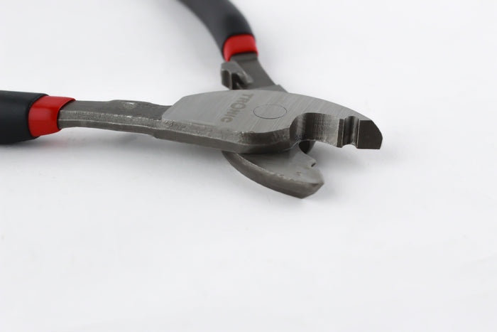 Tronic cutter that has a cutting blade on the side of the jaws. The cutter is also able to cut wire and nails. They are primarily designed for clipping and severing wires.