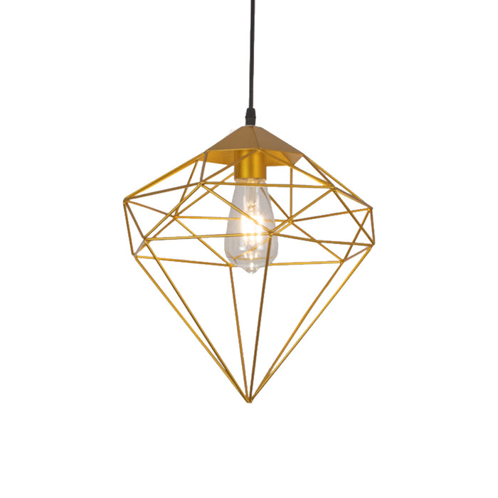 Diamond cage shaped pendant lamp, a combination of contemporary style and industrial feel. Excellent for accent lighting.