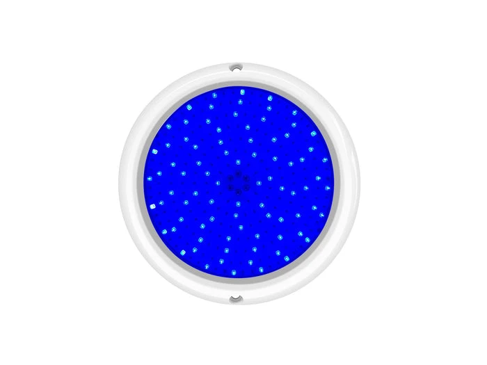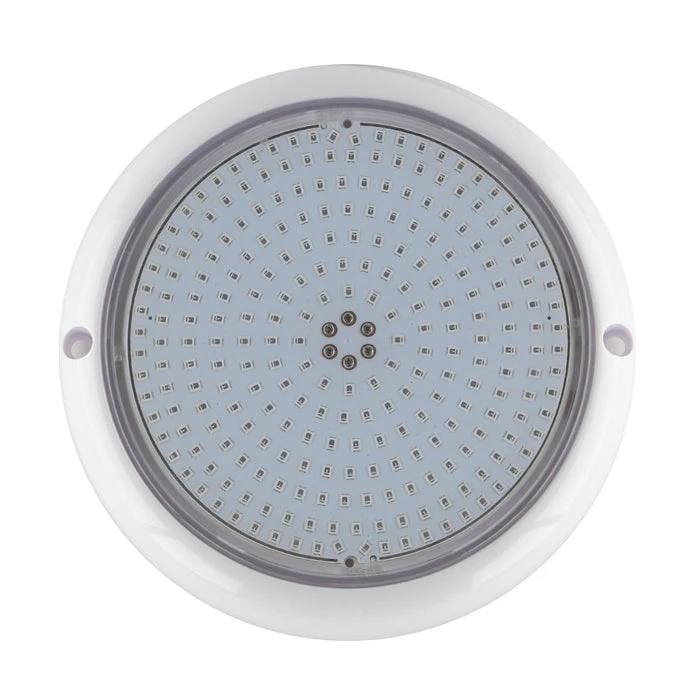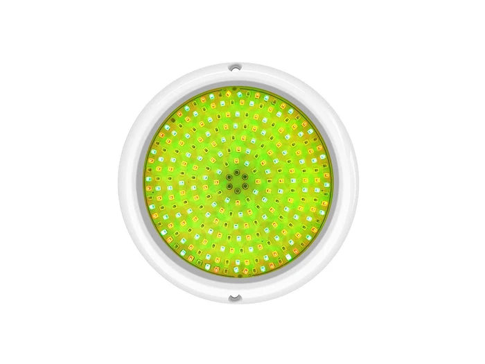 Tronic Submersible RGB (16 programs with a Synchronization capability) swimming pool light. It comes in White housing with an IP68 rating, making it ideal for Ponds and other underwater decorative Purposes. Filled fully with resin, the lights are completely waterproof, they have a lifespan of 30,000 hours continuous operation, and they must be used/operated while fully submerged underwater only. The LED’s are driven by constant current. High-temperature protection makes the LED’s be protected while the internal temperature reaches a high level. All these technologies guarantee the long working life of the LED lamps. This lamp is designed to be fixed in new pools and/or pools with existing surface mounted lamps that need replacement. The lamp should only operate underwater while secured to the vertical walls of the pool, never switch on the lamp if it is not underwater.
