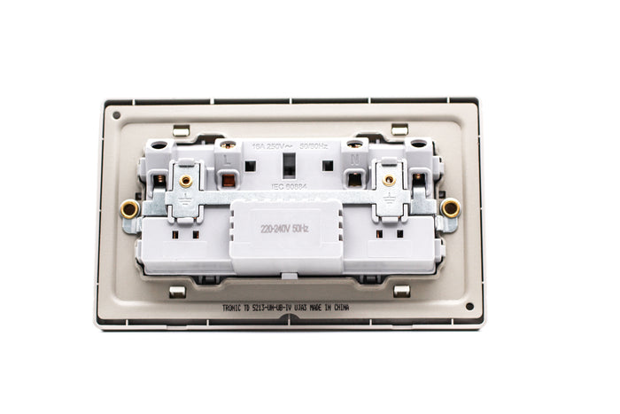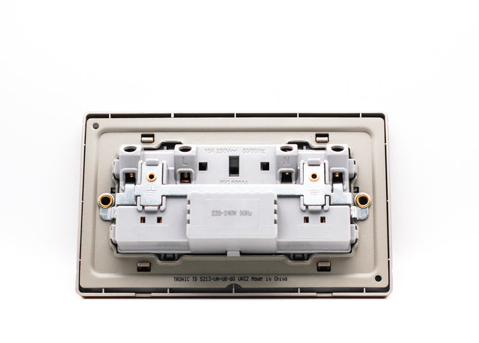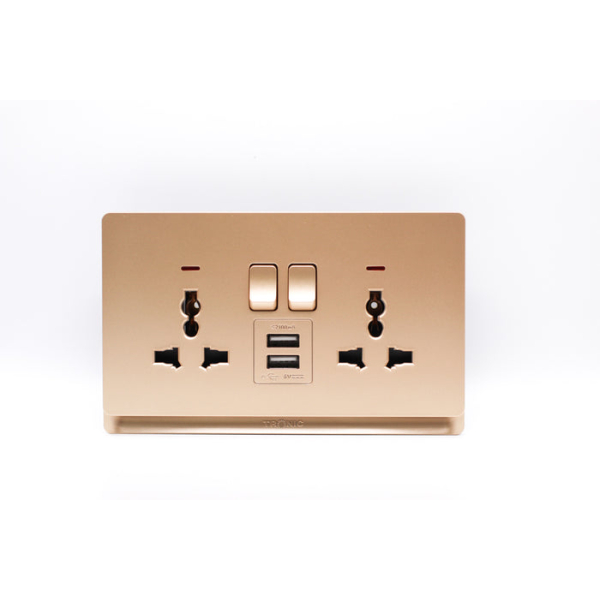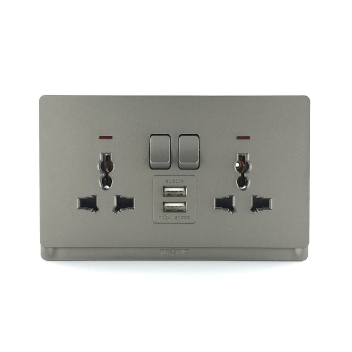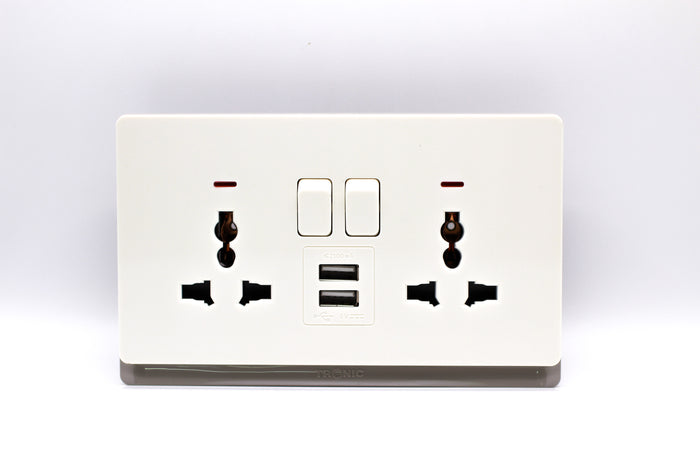 This premium range Tronic Universal Double Socket in Grey provides a screwless finish, is slim, has smooth edges, has a neon indicator, and has a shiny surface to fit into the modern style of one home or office. Its screws are hidden perfectly suited to add style to your home or offices whilst also providing a safe and durable socket for your appliances. A universal single socket can handle both 15A and 13A plugs, i.e., square and round ports. This socket also has 2 USB ports to charge your mobile devices.