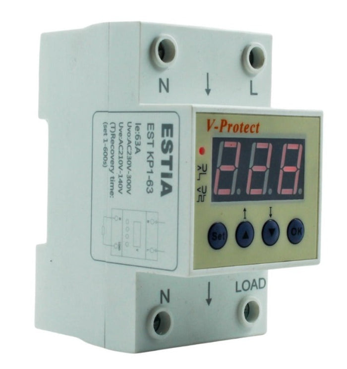Protect your electrical equipment with our Voltage Protector 63 Amps. With a capacity of 63 amps, it efficiently regulates voltage, preventing damage to devices.