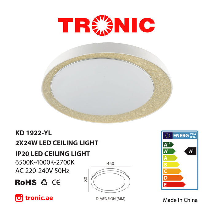 Tronic White With Yellow Half Moon LED Changeable (3 Shades) Ceiling light