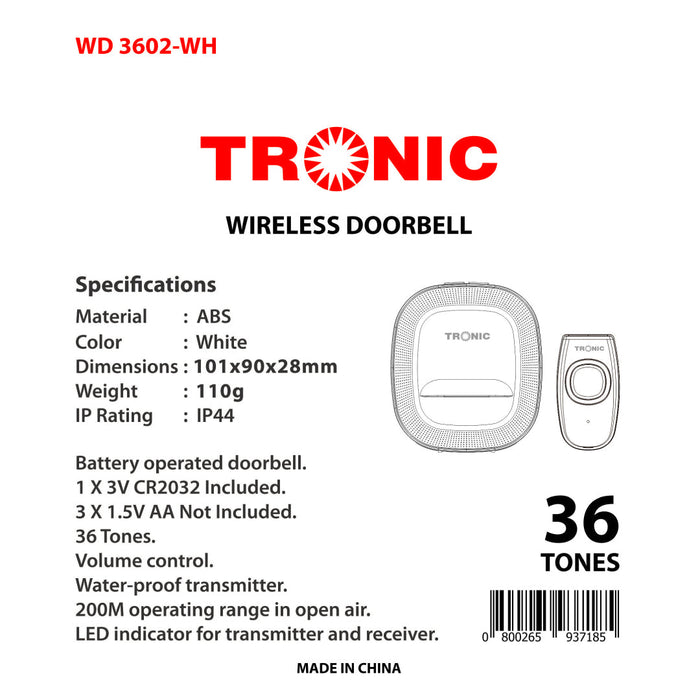 Be the first to review “Tronic Wireless Doorbell WD 3602-WH”
