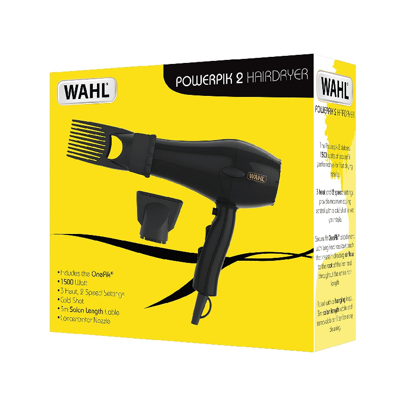 The Wahl Powerpik 2 is a powerful hair dryer designed for Afro-Caribbean hair with secure fit OnePik® attachment for powerful, fast drying results.