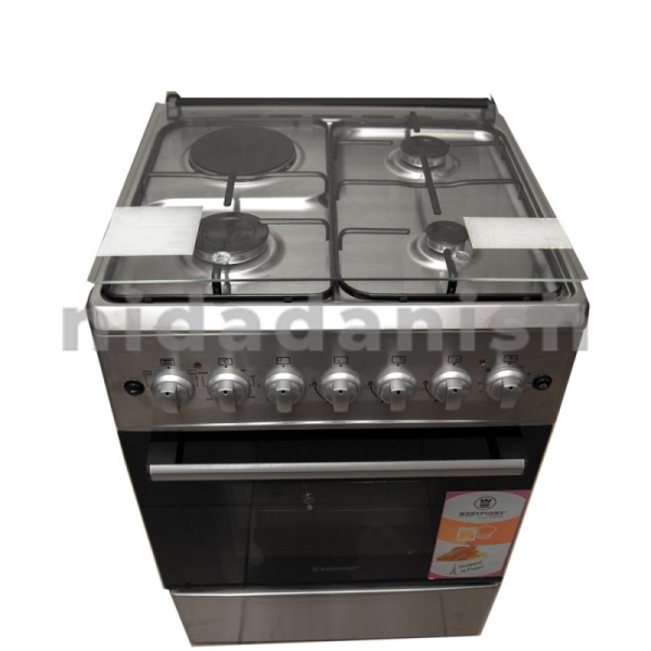 Westpoint Cooker 60x60cm, 3 Gas Burners, 1 Electric Plate with Electric Oven Auto Ignition Inox WCER6631E0X