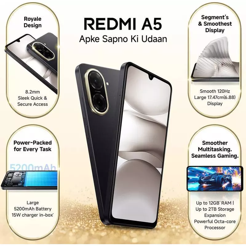 Xiaomi Redmi Smartphone A5 64Gb 3Gb Ram 32Mp Ai Dual Camera Immersive 6.88&Quot; Display T7250 Processor
